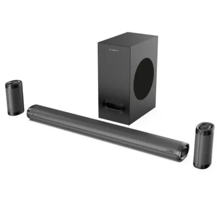 The included wireless surround speakers connect effortlessly to the main soundbar, delivering true rear-channel audio while maintaining a clean and organized setup. This ensures a genuine surround sound experience without the complexity of extensive wiring.